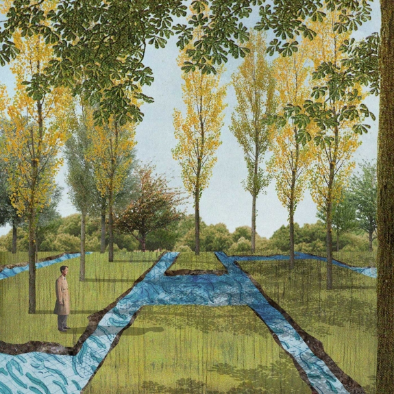 The study area is an island pushed and chopped from all directions by the built city, the past, the present and the "yet-to-come". The project’s attempt is to negotiate these conflict limits and renaturalize the core. In this perspective, the reading of the project can be done as the making of it, from all around towards the its center.